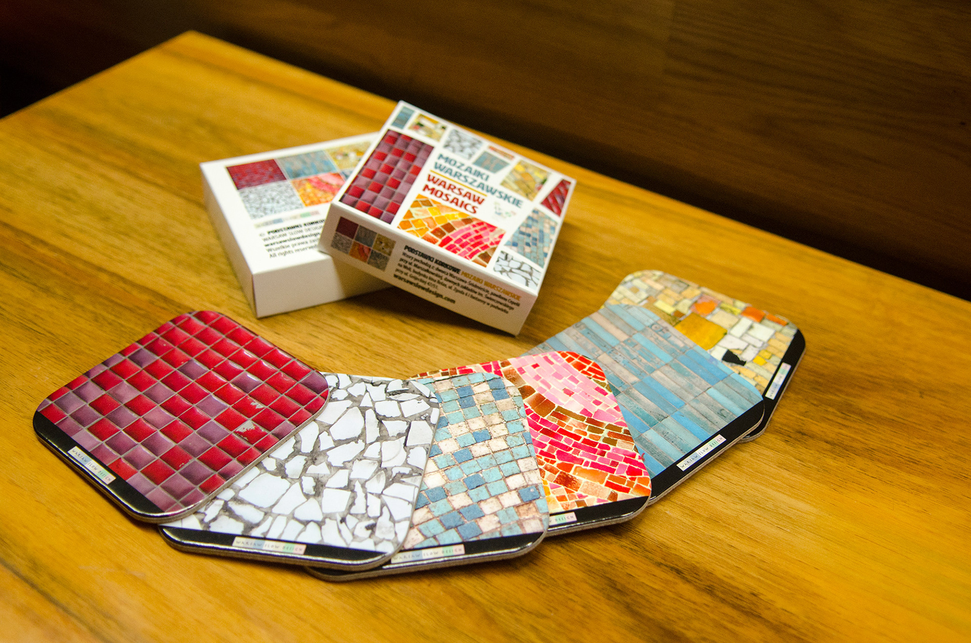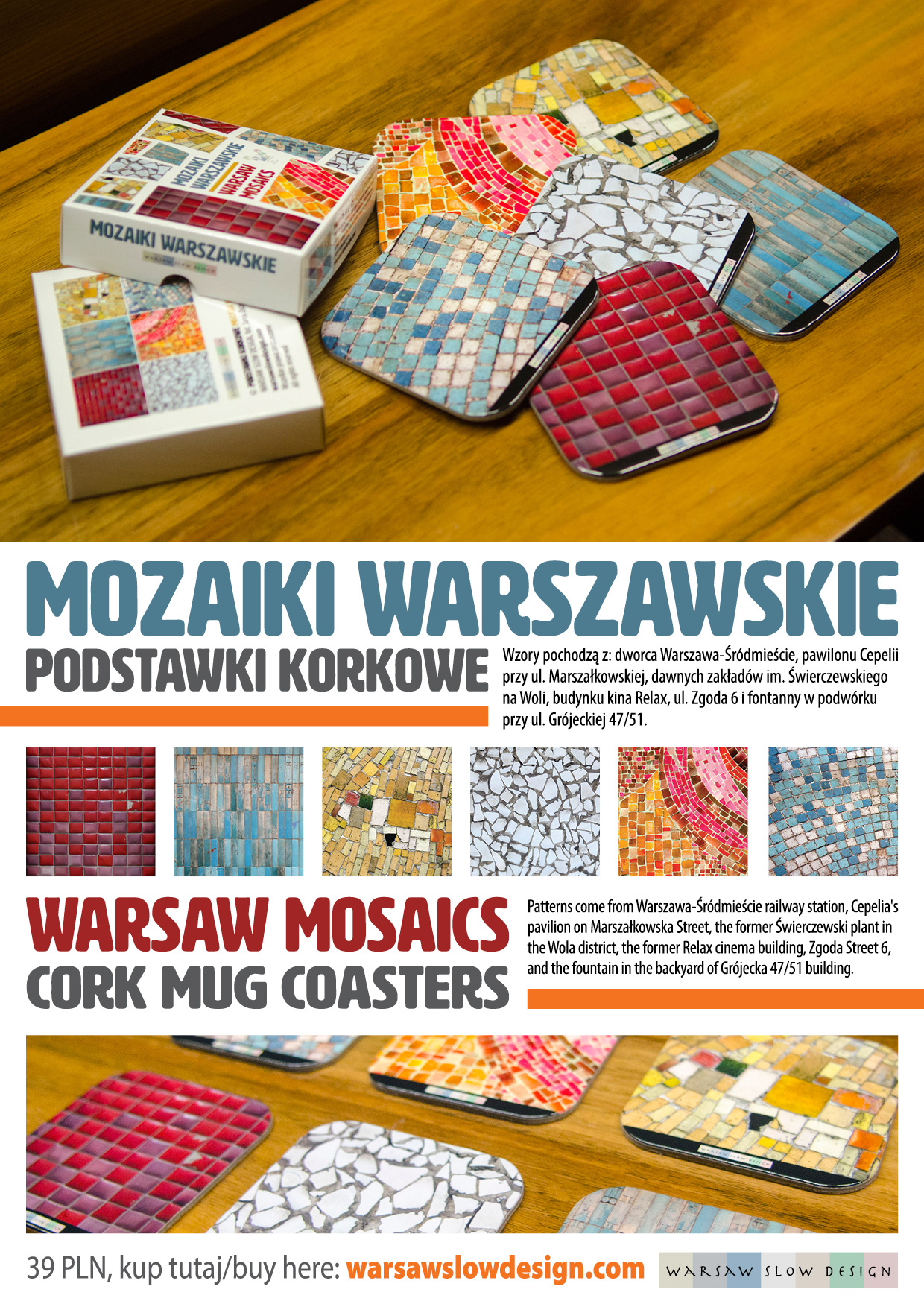 Cork mug coasters for Warsaw Slow Design with Warsaw mosaics from communist era
